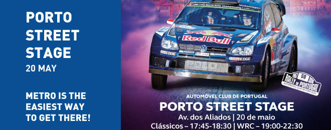 Metro is the easiest way to get to Rally de Portugal Porto Street Stage. This event is going to take place on May 20th at 7pm between Trindade and São Bento. Metro do Porto has an operation specially prepared for the day.